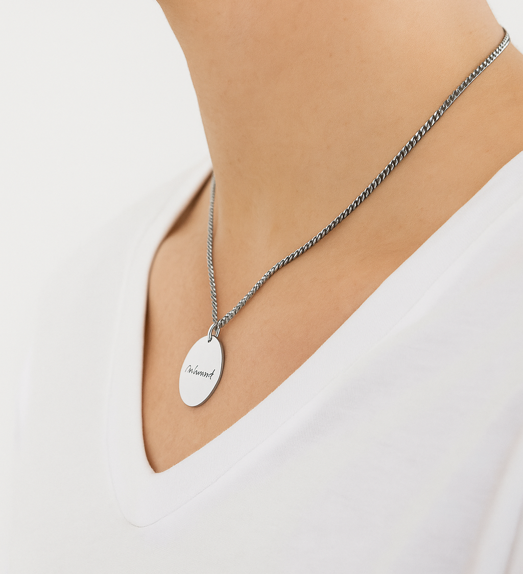 Minimalist Design: Sleek, modern round pendant with clean lines. Perfect for layering or wearing solo.