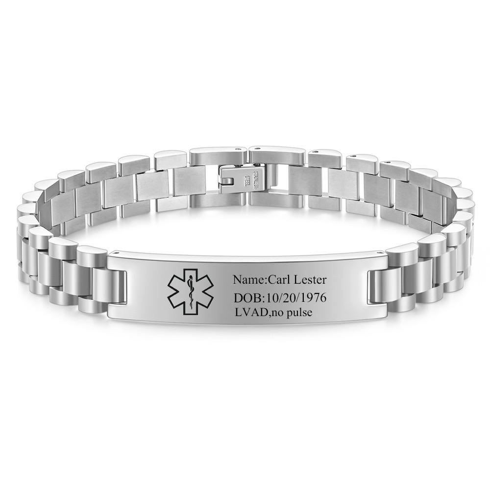 Sleek, strong, and sophisticated, this is where timeless style meets practical design. Crafted from premium stainless steel with a brilliant silver finish, this bracelet provides both durability and elegance. The engravable plate offers a customisable space for names, verses, dates, motivational quotes, medical alerts, or any message that matters most to you.
